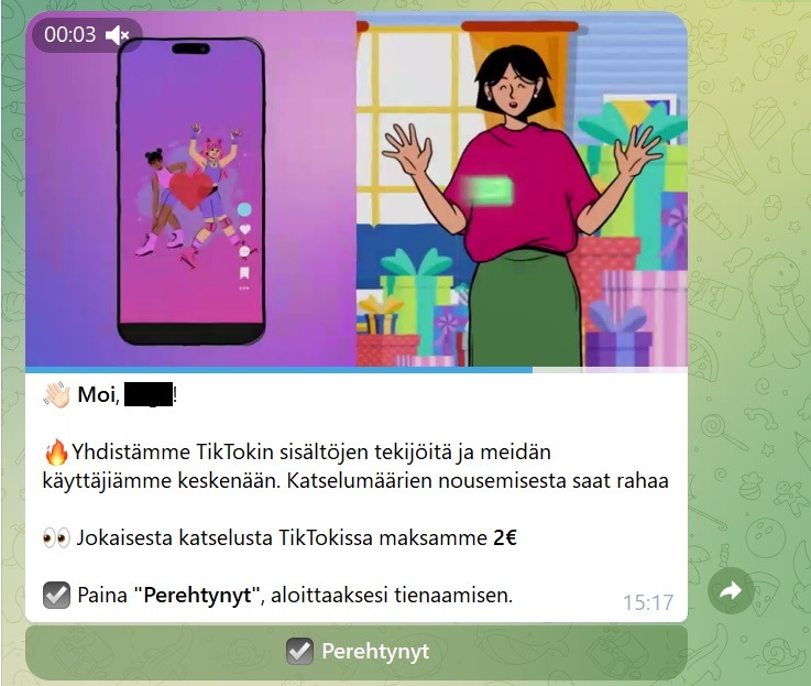 Sure, Telegram bots aren’t limited to extracting crypto. For instance, we uncovered a scam inviting victims to get paid for watching short videos. Where? In a Telegram bot, of course.