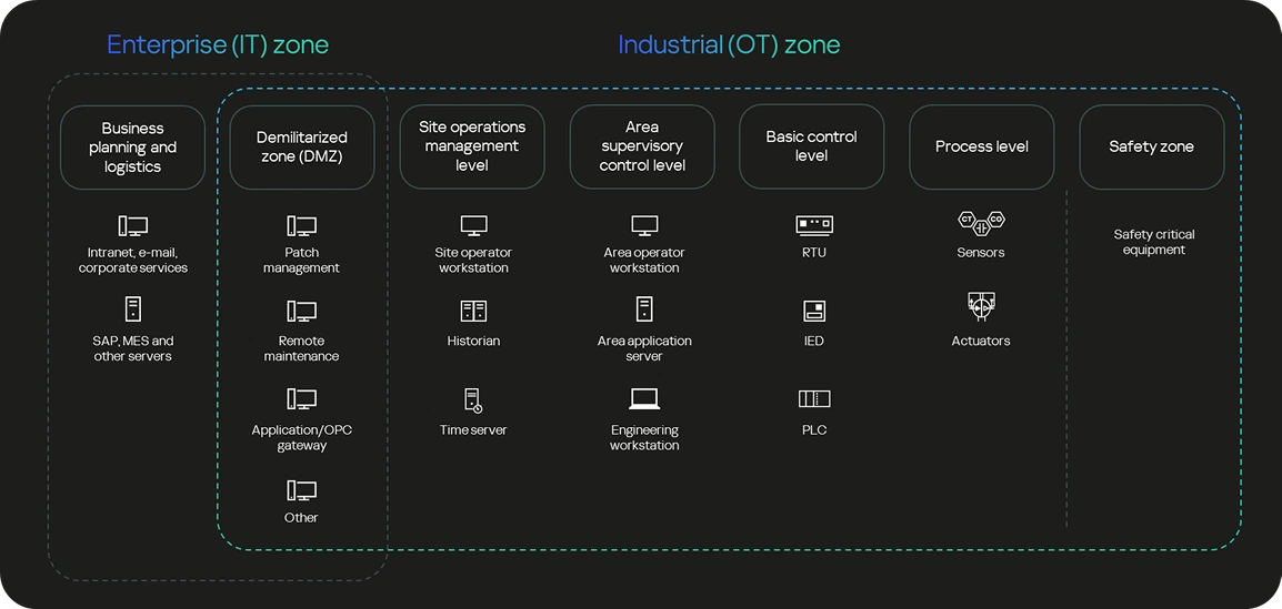 Our approach to industrial security assessment is based on the Purdue Reference Model. It leverages the defined Purdue levels to pinpoint and assess attack vectors across IT and OT. This clarity drives risk prioritization and informs targeted mitigation strategies.