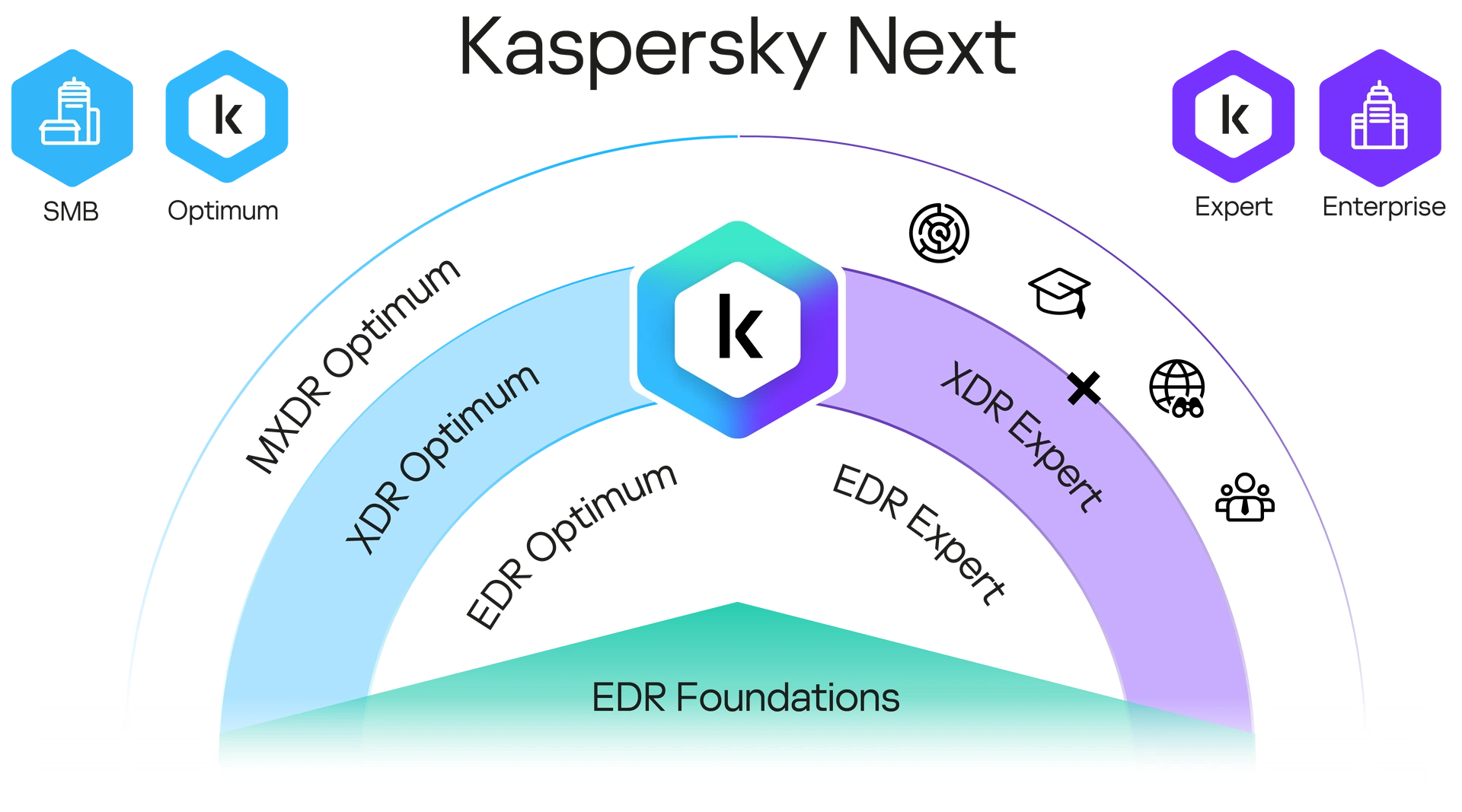 Kaspersky Next offers tiered security to strengthen your security at every step of your business’s growth – from essential endpoint protection and EDR to advanced AI-driven XDR that delivers total cybersecurity for proactive cyberthreat defense.
